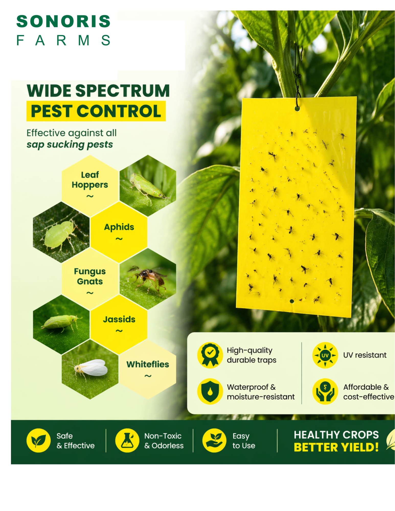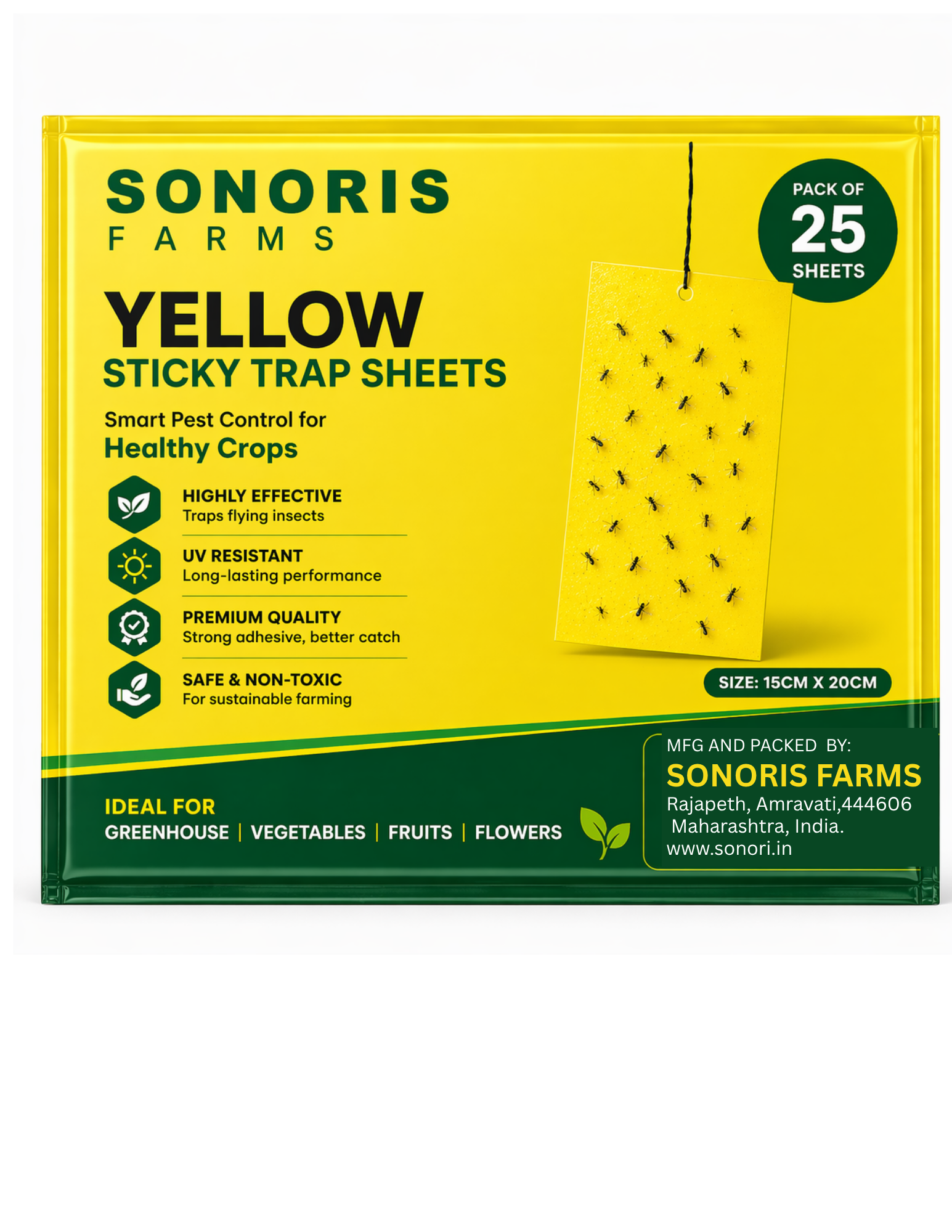Yellow Sticky Traps attract and capture insects without chemicals. Each Bunch Contain 25 sheet. 20 yellow and 5 blue.
